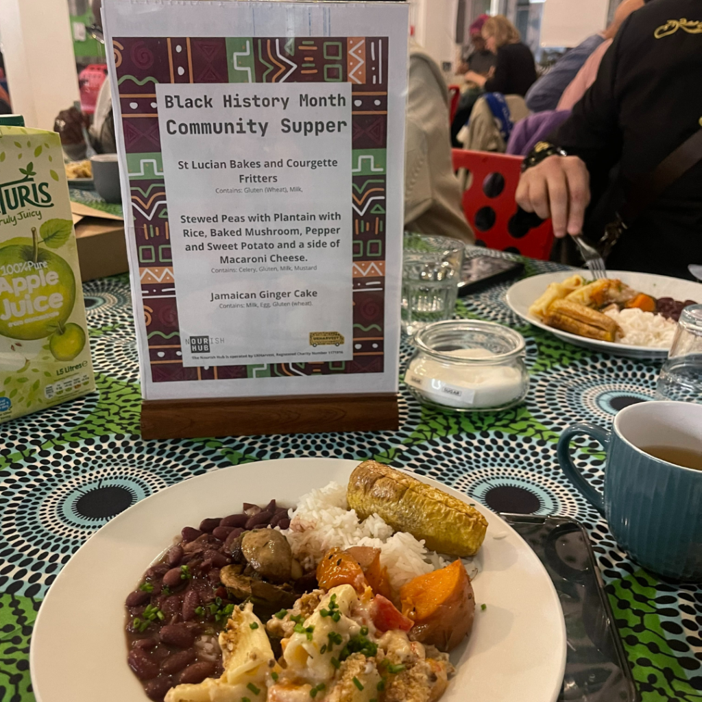 On 19th October, our BHM champions hosted an extra special community supper, with performances from local independent artists and an Afro-Caribbean menu designed by our champions and Floor Manager Celina. The event was an outstanding success, connecting people across generations, backgrounds and bringing our community together.