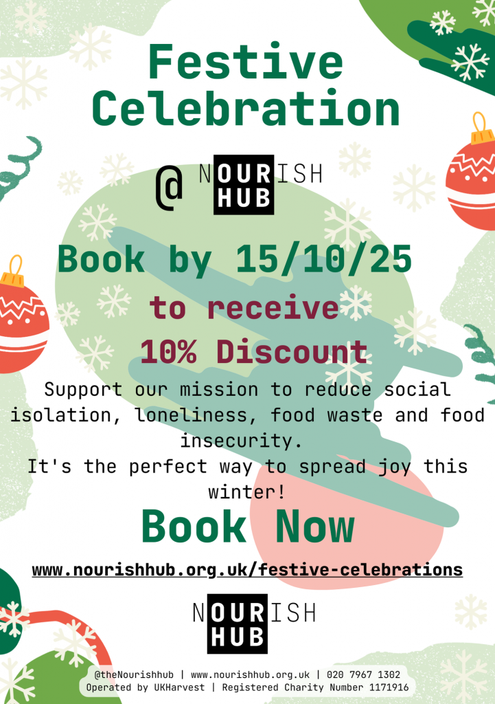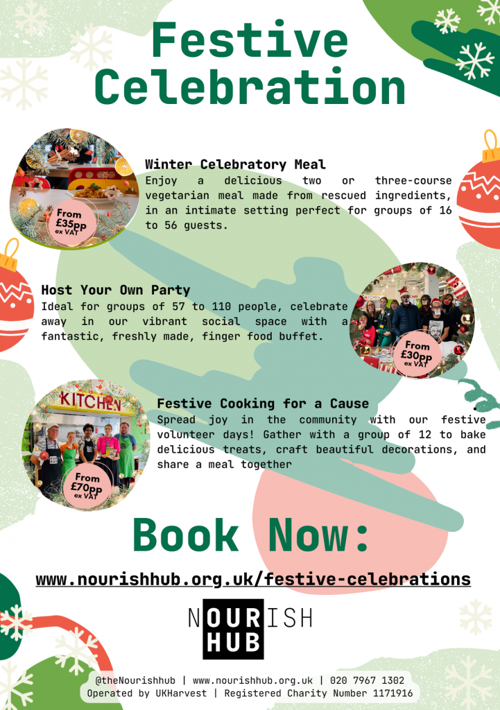 Get in contact with Andreea, Helen and the team at info@nourishhub.org.uk to find out how you can make someone else’s Christmas by booking Nourish Hub to celebrate yours.Â